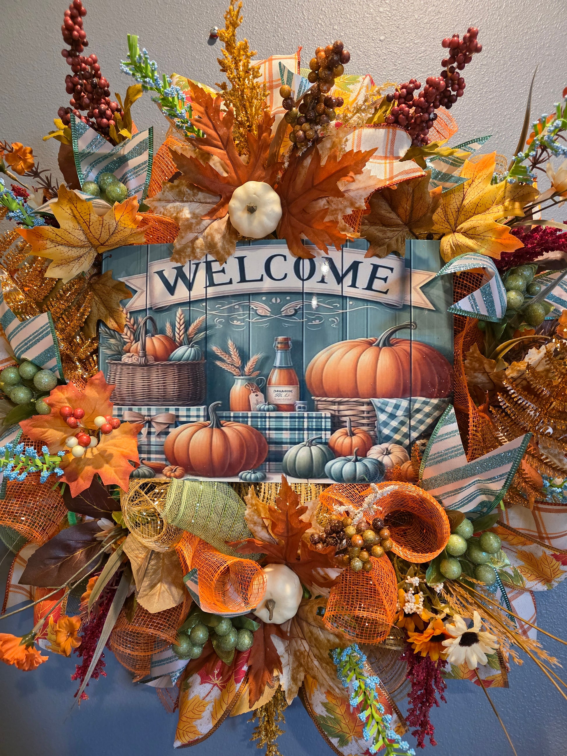 If you love to decorate for fall this wreath sure will make you smile! This lovely mesh fall welcome wreath will look so pretty on your door, wall or in a window. The size of this wreath is 24" in circumstances, these also make the best gifts for them special people in your life.