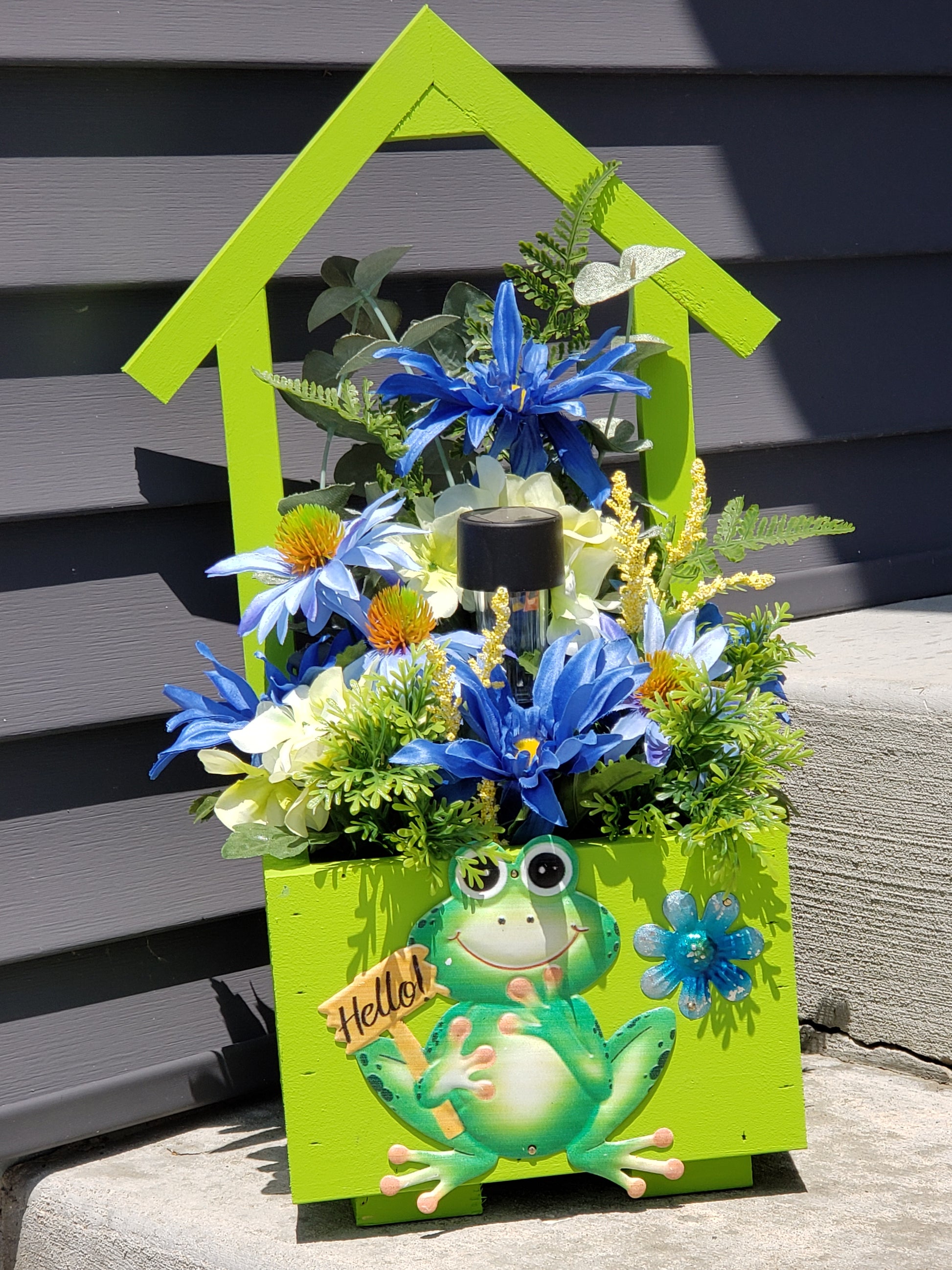 Do you love solar lights and faux flowers than this item is calling your name! Do you hate when every time you have to do weeding you have to pull out your solar lights or when you pull your solar lights out of your rock garden then before you know it you have weeds coming up. Well this solar light flower box can be set anywhere you would love to have some decorative look and light at night.