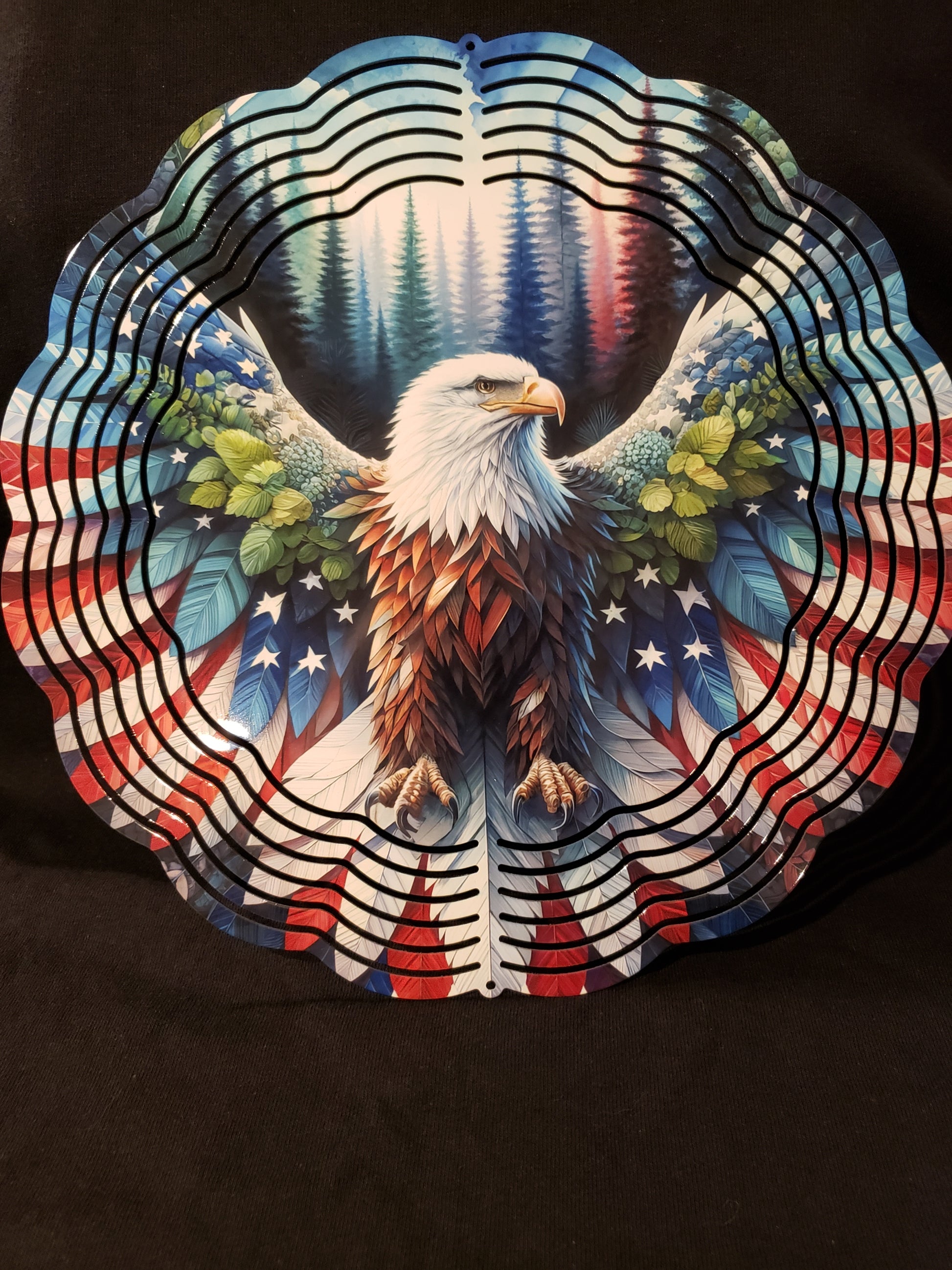 - METAL WIND SPINNER: If you are looking for something like this check these out. Great quality stainless steel wind spinners that will hold up for a very long time. You're going to love the way this yard wind spinners spins and glows in sun and even in the dark if there is nearby light to bounce off of, and this outdoor decorations for patio can weather some serious wind storms too! Wind spinners hanging spins even in the slightest breeze, which can scare away birds.