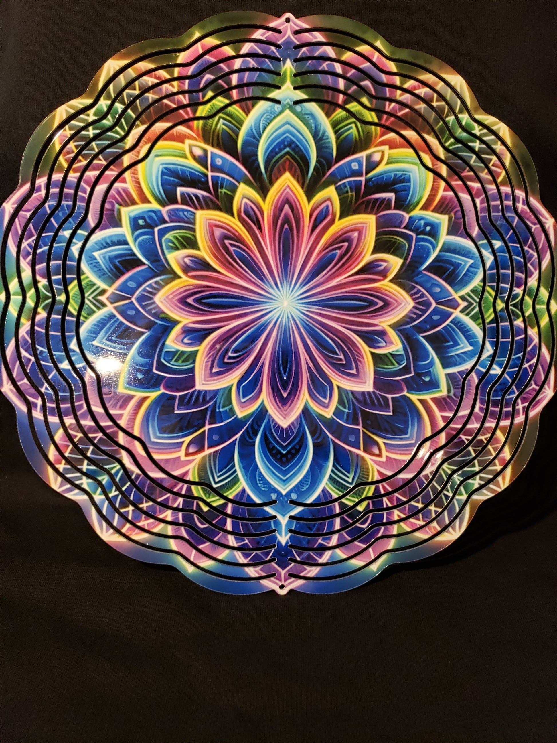 - METAL WIND SPINNER: If you are looking for something like this check these out. Great quality stainless steel wind spinners that will hold up for a very long time. You're going to love the way this yard wind spinners spins and glows in sun and even in the dark if there is nearby light to bounce off of, and this outdoor decorations for patio can weather some serious wind storms too! Wind spinners hanging spins even in the slightest breeze, which can scare away birds.